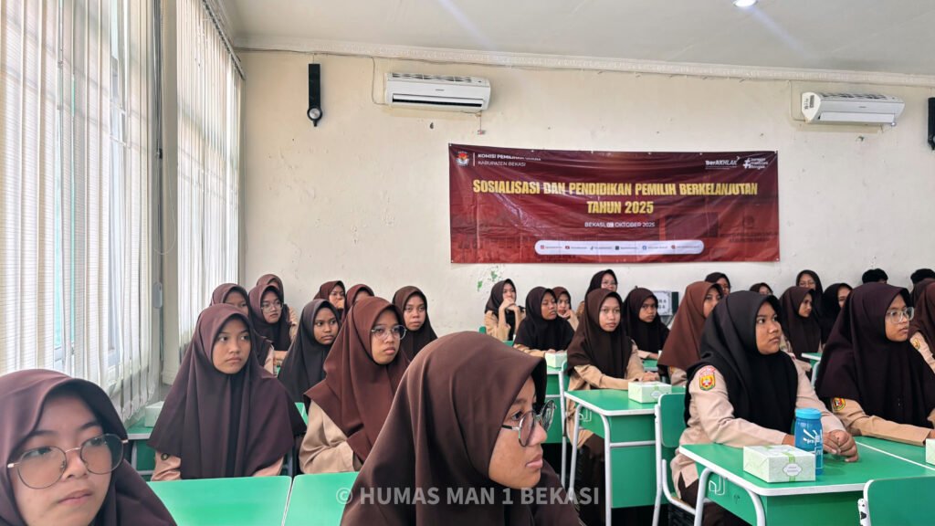 Bekasi — Kamis, 2 Oktober 2025, Komisi Pemilihan Umum Daerah (KPUD) Kabupaten Bekasi melaksanakan kegiatan Sosialisasi dan Pendidikan Pemilih Berkelanjutan Tahun 2025 di Ruang Multimedia MAN 1 Bekasi. Kegiatan ini diikuti oleh 46 peserta didik perwakilan dari berbagai kelas, dengan tujuan menumbuhkan kesadaran politik dan pemahaman kepemiluan sejak dini, khususnya bagi pemilih pemula.