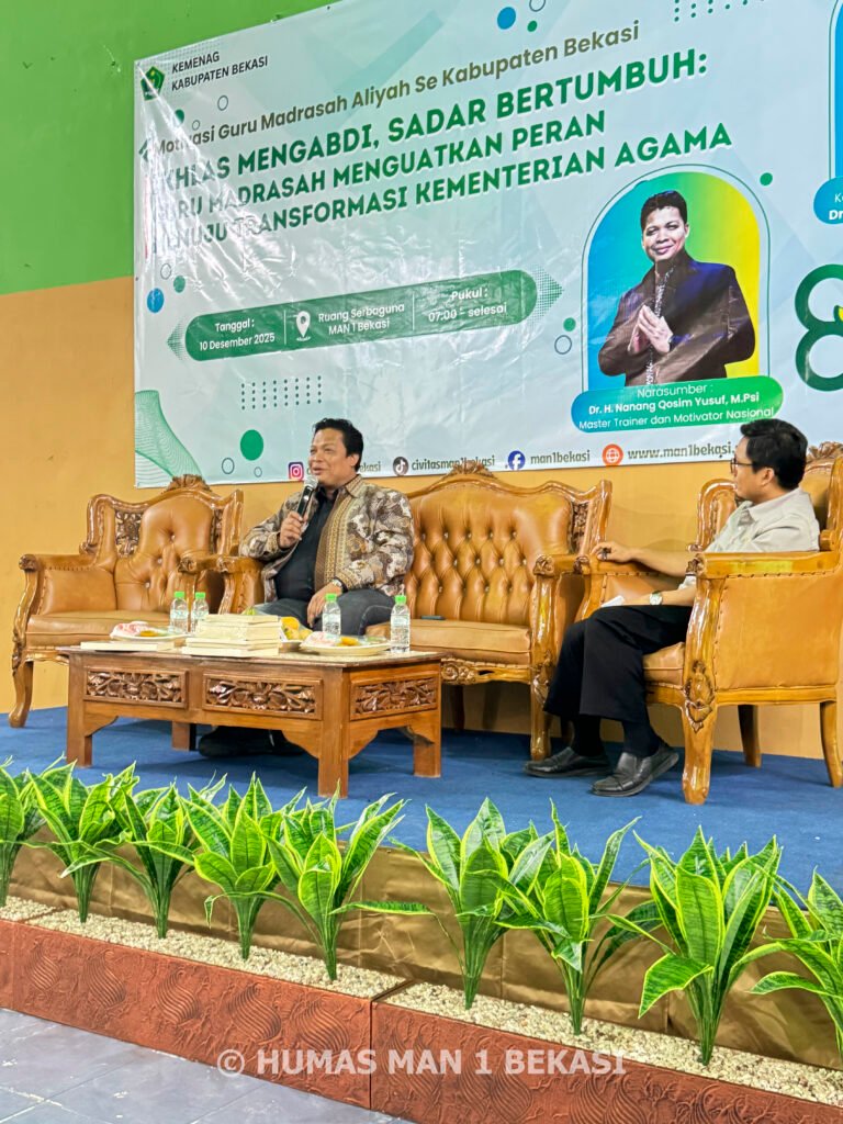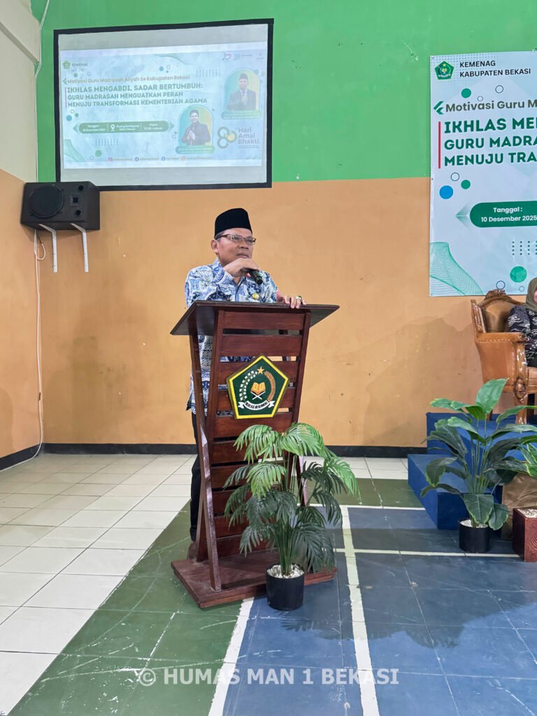 BEKASI – Dalam upaya memperkuat peran dan semangat pengabdian guru madrasah, kegiatan Motivasi Guru Madrasah Aliyah se-Kabupaten Bekasi digelar pada Selasa, 10 Desember 2025, bertempat di Gedung Serbaguna MAN 1 Bekasi. Kegiatan ini mengusung tema “Ikhlas Mengabdi, Sadar Bertumbuh: Guru Madrasah Menguatkan Peran Menuju Transformasi Kementerian Agama.”